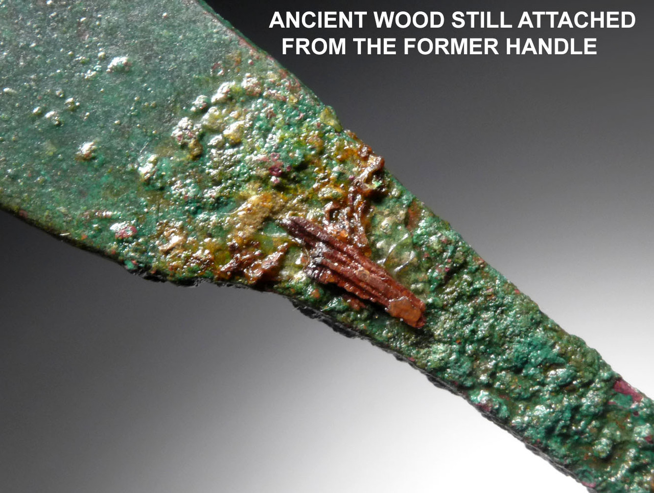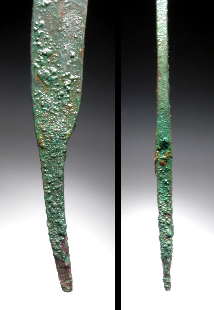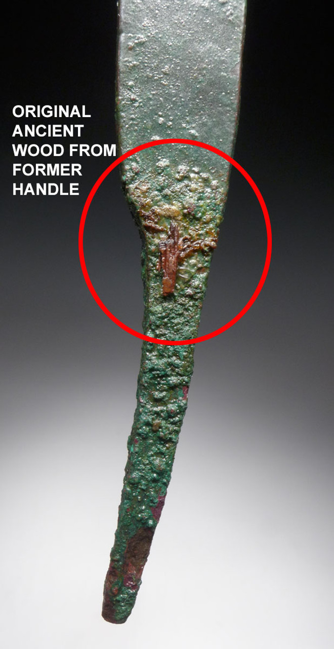 CONDITION:COMPLETE WITH FULL TANG. PERFECT PRESERVATION WITH NO DAMAGE. NO REPAIR OR RESTORATION. ANCIENT WOOD HANDLE FRAGMENTS ON TANG. INTACT ANCIENT ENCRUSTATIONS. CONSERVED.