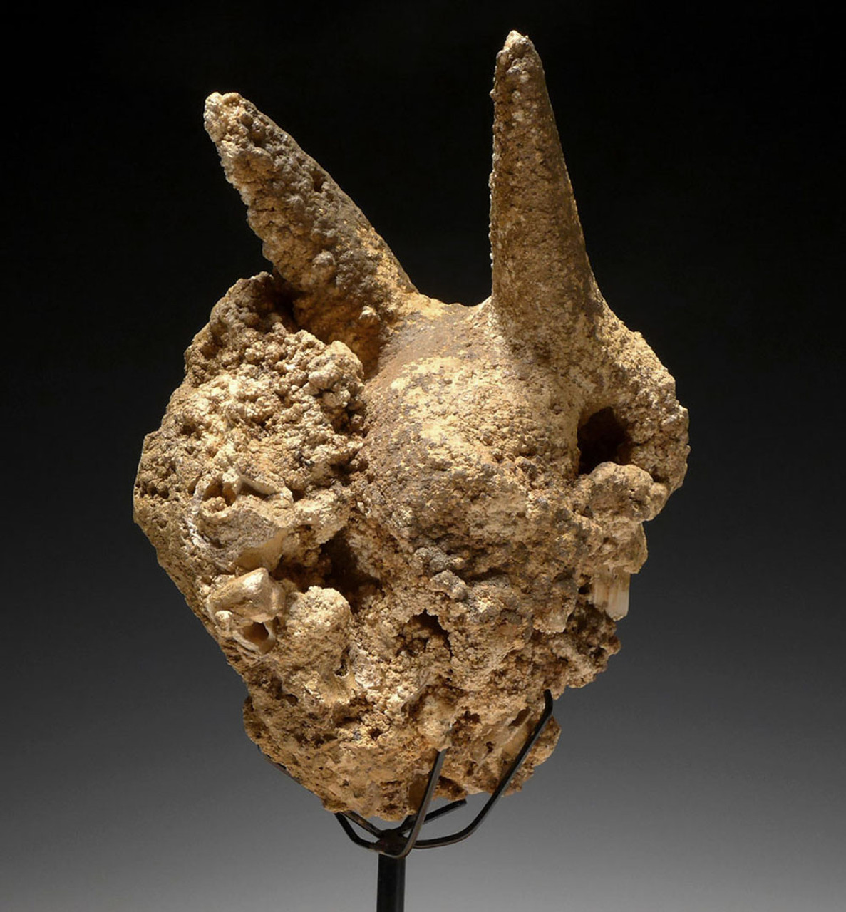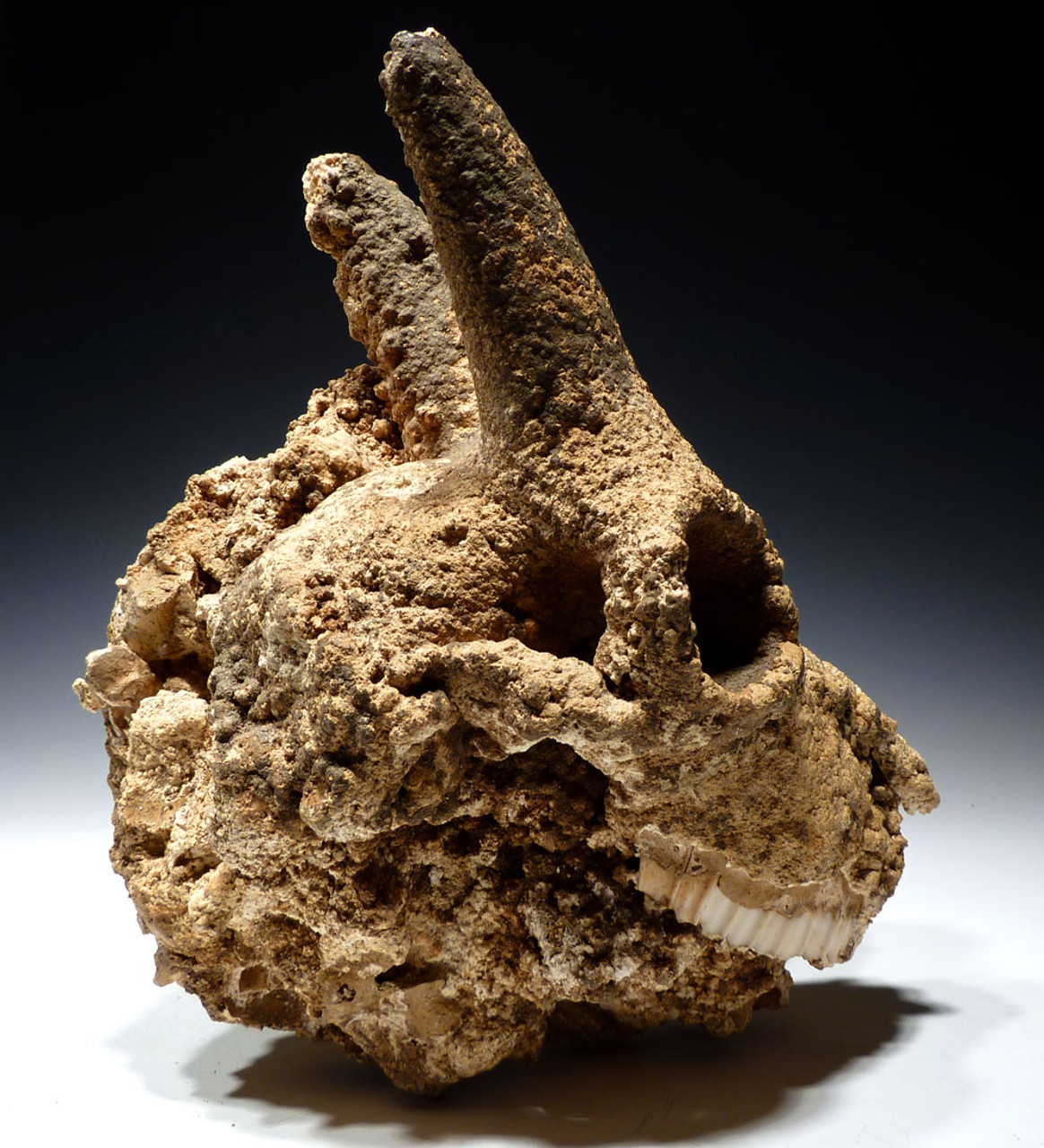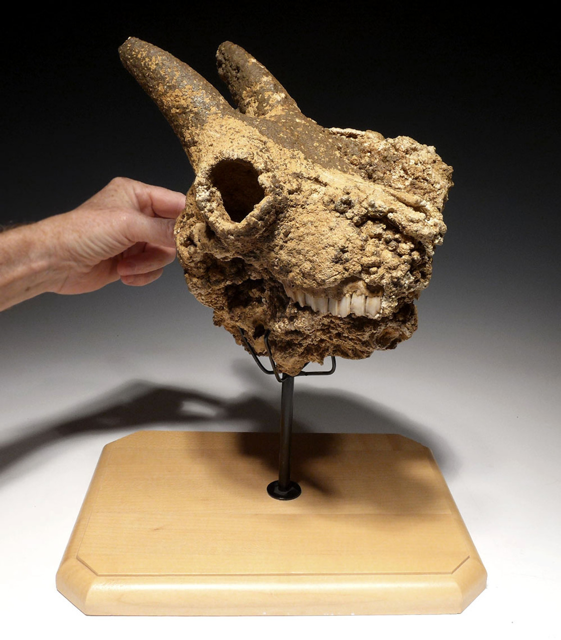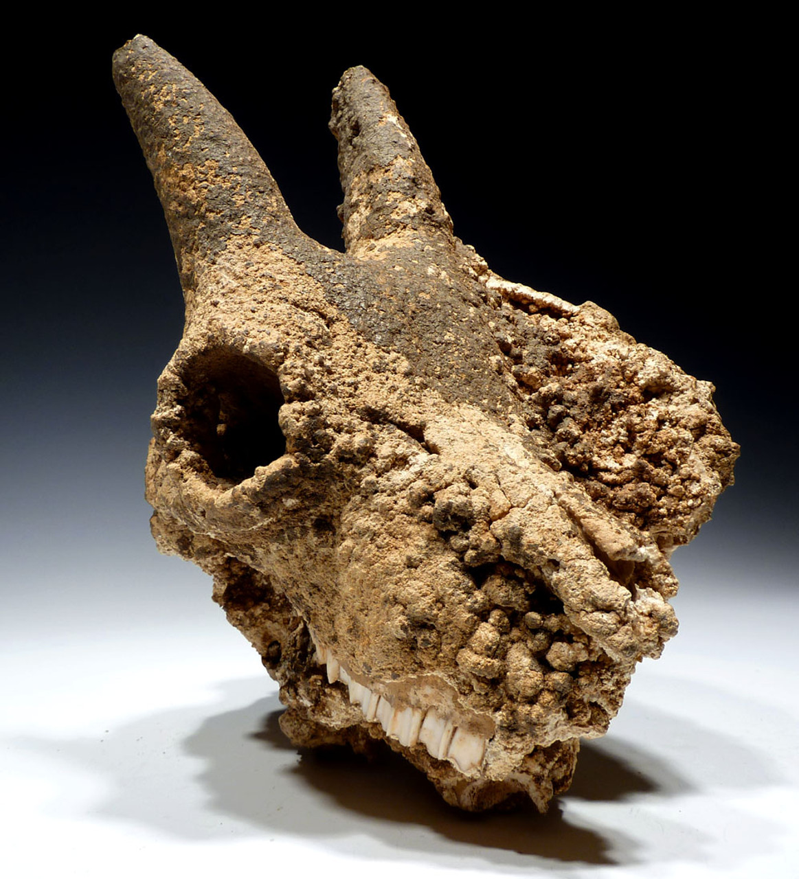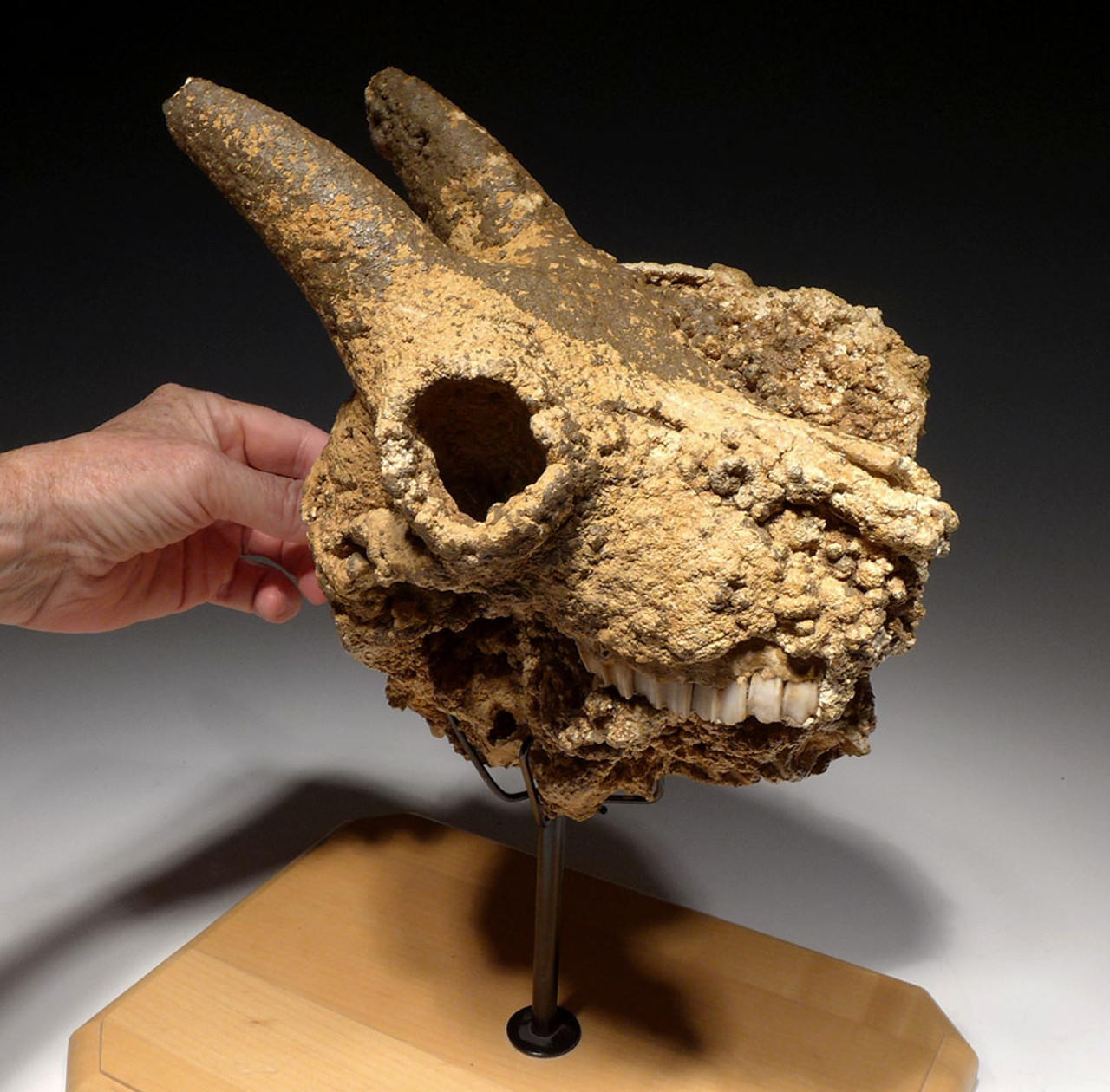 Ultra-Rare Fossil Ibex Skull – “The Sleeping Ibex” with Cave Pearls