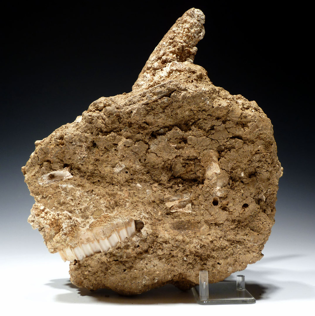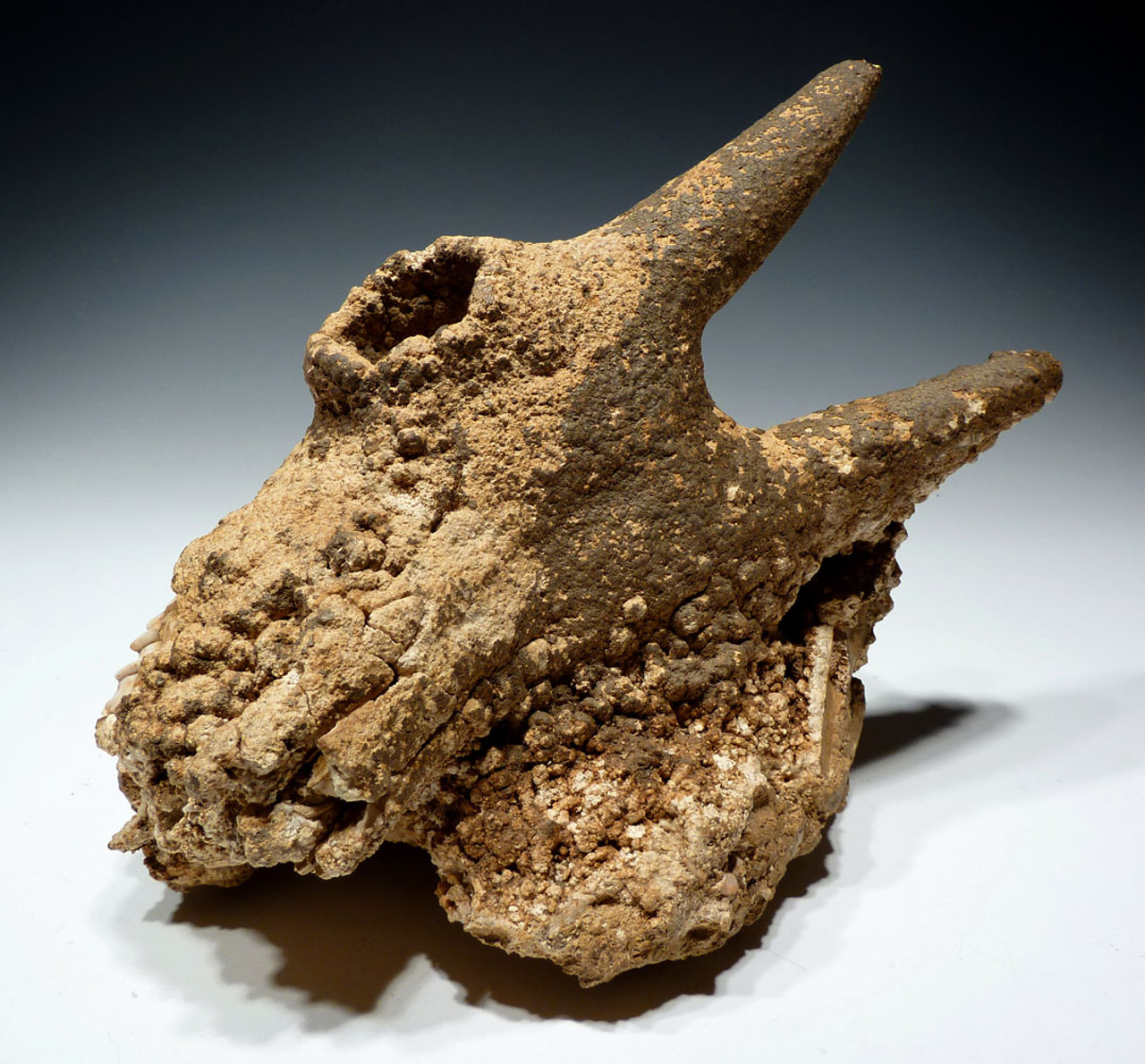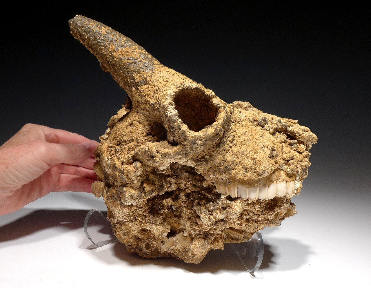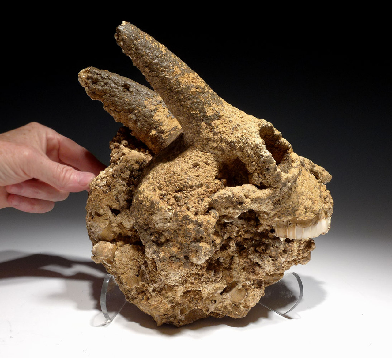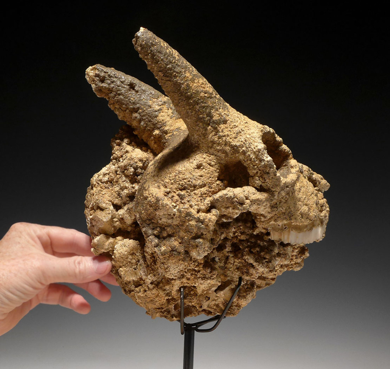 Ultra-Rare Fossil Ibex Skull – “The Sleeping Ibex” with Cave Pearls